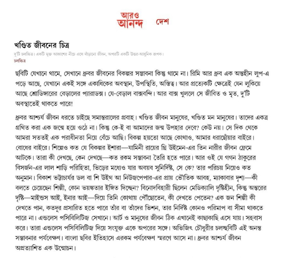 The film has earned multiple prestigious accolades, including Best Bengali Film at the Kolkata International Film Festival, Best Director at the Atlanta Indian Film Festival, and Best Film at the NABC Film Festival.